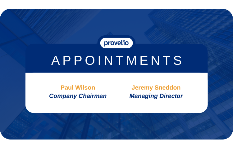 Provelio are delighted to announce the appointment of Paul Wilson as Company Chairman and Jeremy Sneddon as their new Managing Director. Having been Managing Director